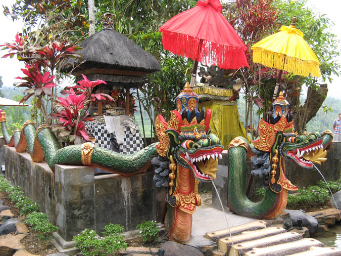 Door een mooi berggebied rijden we naar restaurant Mahagiri waar we gaan lunchen. Dit restaurant ligt boven op een berg met een prachtig uitzicht over de groene sawa's. Het is een schitterend plaatje. De lunch smaakt ook erg prima en de satéstokjes erg lekker. Om 15.00 uur zijn we klaar en hebben afgerekend, waarna we vertrekken naar onze laatste bezichtiging.