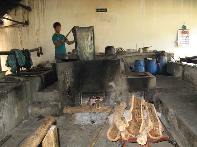 De werkomstandigheden zijn niet ideaal. Vrouwen ademen de dampen van de was in. We zien ook een jongen die bij een bak heet water de was van het textiel spoelt. De bak wordt met vuur van onderen verhit. Wanneer we te dichtbij komen is het door de hitte bijna niet uit te houden. Deze jongen doet het dus dagelijks.