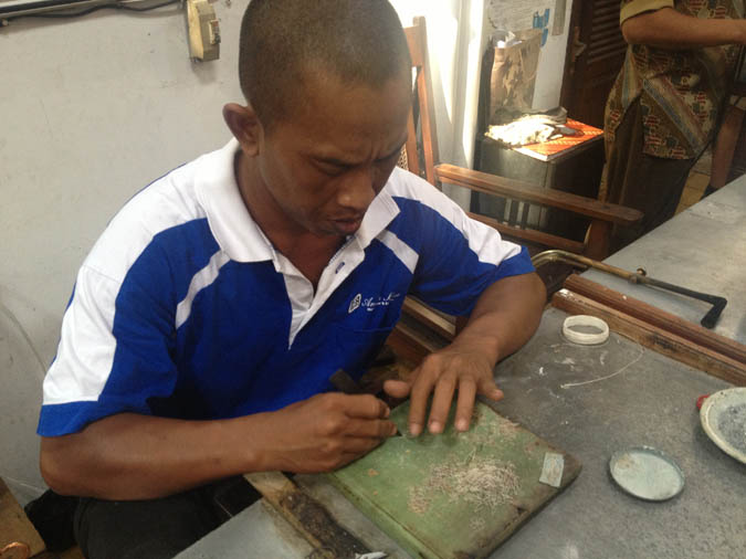 We vertrekken om 8.05 uur met de bus. Onze eerste stop is een kwartier later bij een Batik schilderijenshop. Hier krijgen we een uitleg hoe ze het een en ander maken en produceren. Daarna mogen we even rondkijken in de shop waar hele mooie batik schilderijen hangen. Ik vind het na 5 minuten wel prima en ga naar buiten toe.