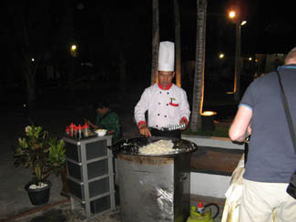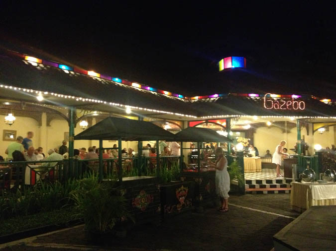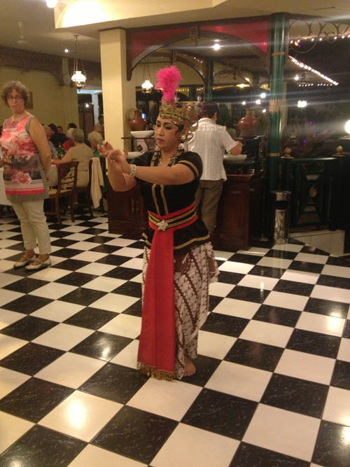 We verzamelen om 18.30 uur in de lobby en vertrekken dan met de bus naar de Ramajana Show. Voordat we de show gaan bekijken, gaan we eerst dineren op het complex. Het eten is ronduit slecht. Alles is koud. Ook de saté is koud. Het is er ook erg druk en het restaurant heeft veel weg van een vreetschuur.