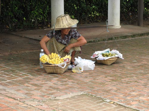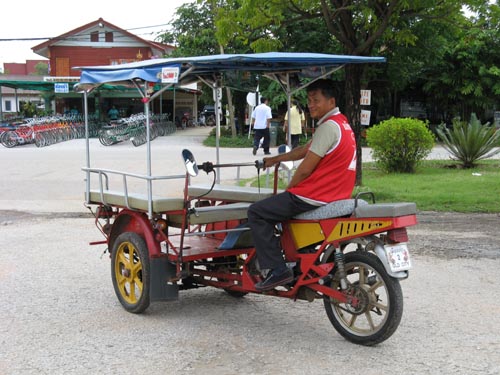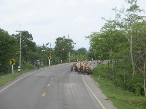 Omstreeks 11.00 uur zijn we weer terug bij het beginpunt en nemen we onder het genot van koffie of frisdrank even de tijd om bij te komen . Hierna vervolgen we onze weg. Deze dag is een dag waarop we de meeste kilometers in de bus af leggen. Onderweg zien we vele rijstvelden en komen we door kleine dorpjes. Ook is de weg met vele kuilen en gaten af en toe erg slecht, waardoor soms van je stoel af vliegt.