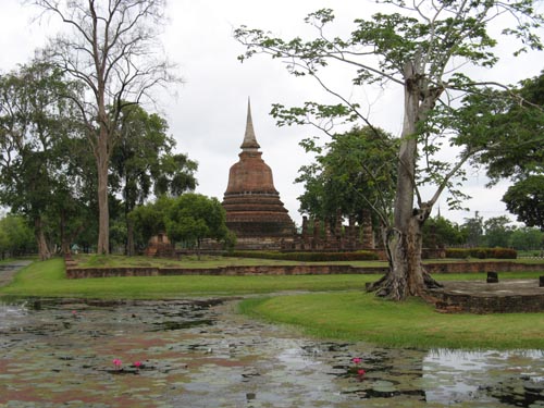 Na een uurtje te hebben gereden komen we aan bij het Historisch Park Sukhothai in Sukhothai. Het park omvat de ruïnes van de toenmalig hoofdstad van het Koninkrijk Sukhothai en staat op de werelderfgoedlijst van UNESCO. Het Koninkrijk Sukhothai bestond van 1238 tot 1438.