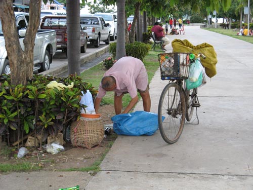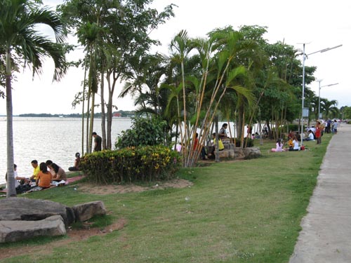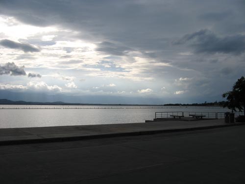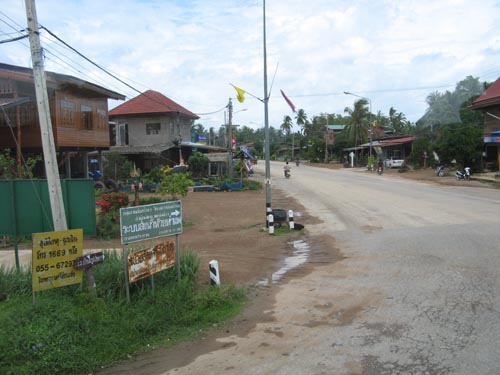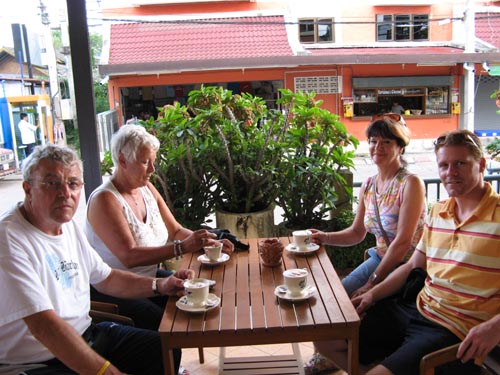 Na een kleine 4 uur te hebben gereden maken we een koffiestop in een klein plaatsje gelegen aan een stuwmeer. We drinken hier koffie en lopen een stukje langs de boulevard. Wat opvalt is de vele mensen die hier op de boulevard aan het eten zijn. Na een uurtje gaan we weer op pad naar onze eindbestemming in Chiang Rai.