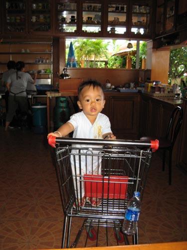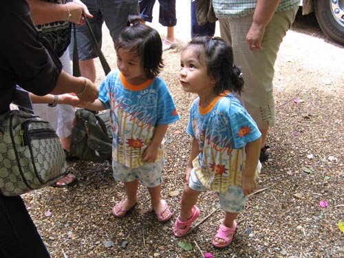 Om 12.00 uur maken we een tussenstop om te gaan lunchen. Bij de ingang van het restaurant maken we nog kennis met een schattige tweeling. De omgeving van het restaurant is prachtig en is gelegen aan een rivier. Het eten smaakt weer zoals gewoonlijk lekker. Tijdens de lunch worden we opgeschrikt door een harde knal en zien personeel uit de keuken komen rennen. Het blijkt dat de slang van de gasfles was los gesprongen. Gelukkig was er geen open vuur in de buurt.