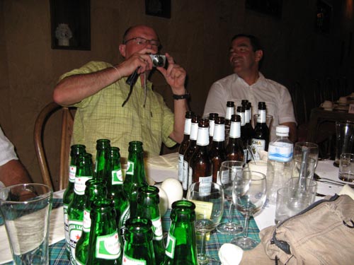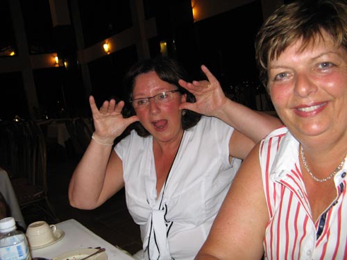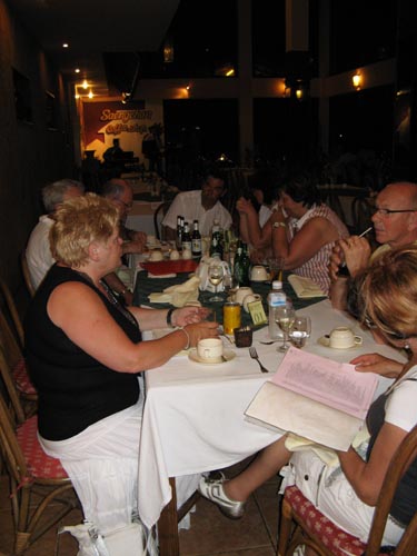 Het diner bestaat uit vele gerechten, waaronder een wok afdeling. Het smaakt weer erg goed. Na het diner drinken we gezellig met de gehele groep nog wat na, waarna we om 23.00 uur richting het huisje gaan.